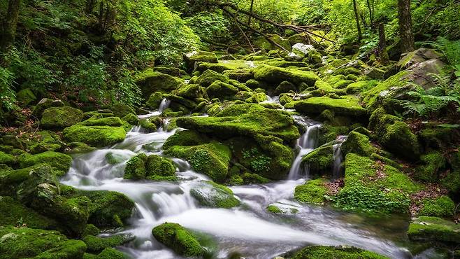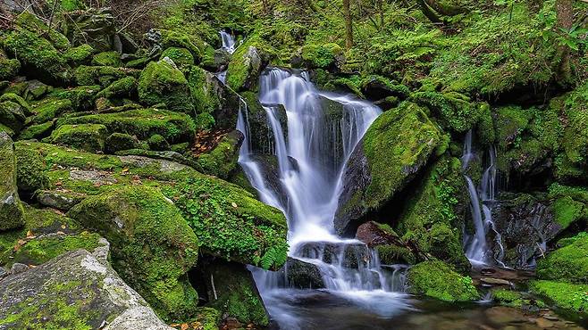 초록 이끼가 뒤덮인 바위, 맑은 계류, 곳곳에 숨은 작은 폭포들이 어우러져 걷는 내내 마치 동양화 속을 거니는 듯한 착각에 빠지게 한다.