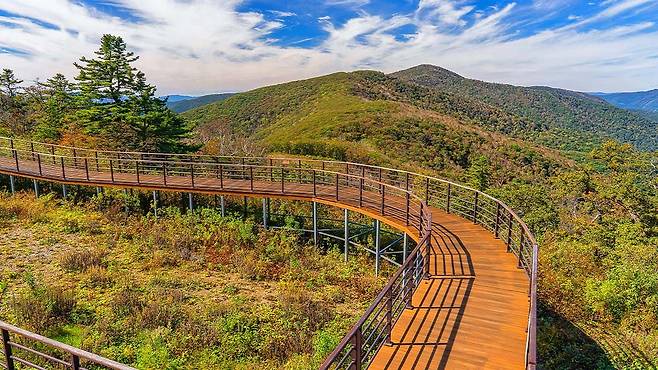 가리왕산 등산로는 경사가 완만한 구간부터 도전 욕구를 자극하는 능선길까지 다양하게 구성되어 있다.
