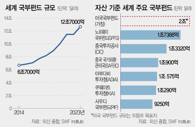 구상이 현실화할 경우 미국 국부펀드는 세계 자산운용 시장의 큰손으로 부상할 것으로 전망된다. 금융 분석 업체 시티UK에 따르면 현재 국부펀드 규모(12조 7000억 달러)는 세계 상장지수펀드(ETF) 시장 규모(11조 3000억 달러)보다도 크다.