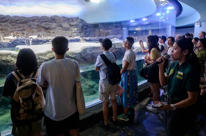 이외에도 강조할 수 있는 공간은 '펭귄 코브'입니다. 펭귄 코브는 약 3000㎡(900평) 규모의 다층으로 구성된 최첨단 실내 공간인데 펭귄 실제 서식지 환경 그대로 구현했습니다. 관람객은 펭귄들이 자유롭게 노는 모습을 볼 수도 있고 위에 있는 레스토랑과 카페에 앉아 자유롭게 즐길 수 있습니다. 이곳 규모는 예전 주롱 새 공원 것보다 거의 3배가 넘습니다.