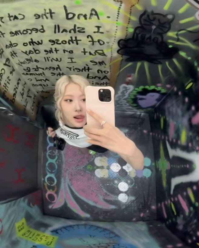 헤어는 물결 웨이브를 자연스럽게 묶은 스타일로, 그래피티 벽 앞에 선 로제의 포즈 하나하나가 힙합적 감성과 화보적 감각을 동시에 자극합니다.