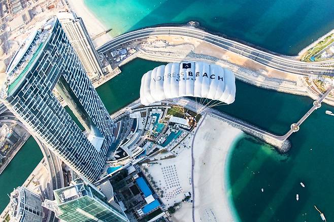 어드레스 비치 리조트는 아라비아해 해안선에 자리 잡은 오아시스입니다. 이 고급 리조트의 꼭대기에 위치한 인피니티풀은 77층에 있습니다. 어드레스 비치 리조트의 964피트 높이인 건물의 최고봉에 자리 잡고 있죠.