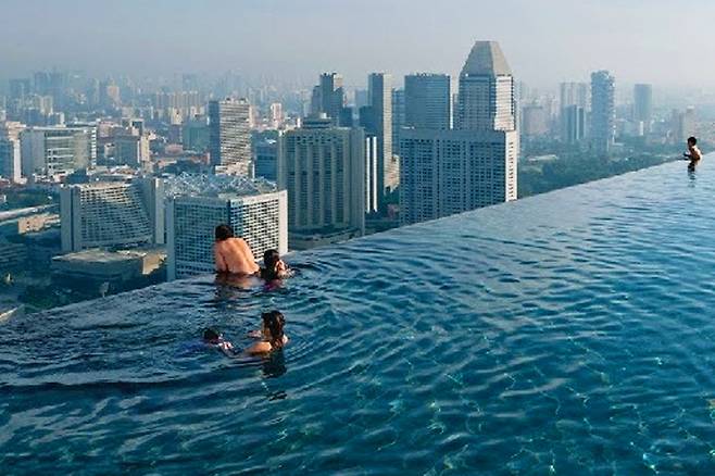이 수영장은 호텔의 57층, 지상 1,060피트 높이에 있습니다. 전망이나 높이에서는 비교할 수 없지만, 여전히 세계에서 가장 큰 야외 수영장의 기록을 유지하고 있습니다.