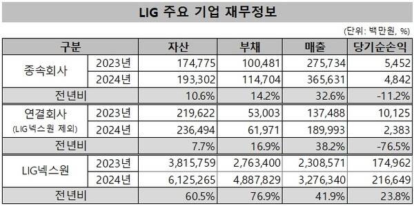 자산 규모에서는 LIG넥스원이 6조1252억원으로 전체의 93.4%에 달한다. 매출 및 당기순손익 비중에서는 85.5%, 96.8%를 LIG넥스원이 차지하고 있다.