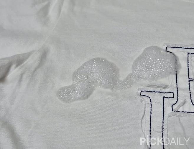 핏 자국은 흰 옷에 묻었을 때 제거 난이도가 높은 얼룩 중 하나다. 우선 찬물에 얼룩 부위를 헹군 뒤, 남은 혈액을 최대한 헹궈낸다. 이후 ‘발을 씻자’를 묻혀 가볍게 문지르고, 10분 정도 둔다. 그 다음 물로 헹구거나 세탁기에 돌리면 혈흔 얼룩이 상당히 옅어진다.