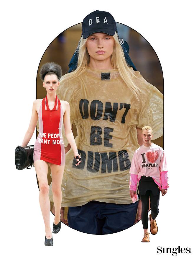 온 거리에 트렌드 아이템으로 뒤덮히기 전, 먼저 트렌드에 탑승하고 싶다면 아래 두가지를 기억하자. 런웨이를 물들인 셔벗 컬러와 과감한 메시지를 새긴 티셔츠가 그것.