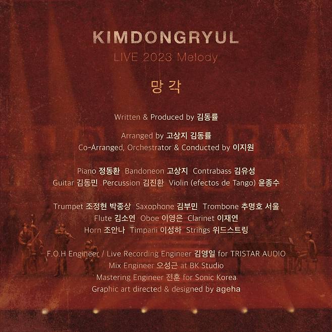 김동률은 지난해 10월 단독 콘서트 '멜로디'(MELODY)에서 '망각'을 탱고 스타일로 편곡한 라이브 무대를 공개해 주목받았다.