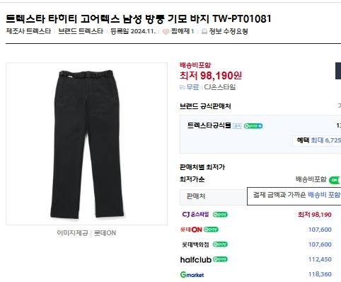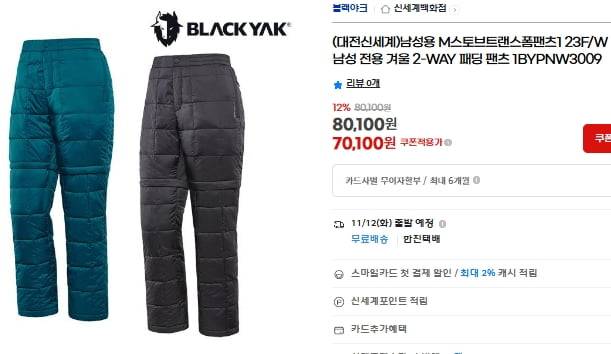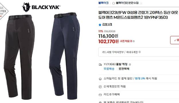 8 겸용 동계용 윈드스토퍼 팬츠. 신한 카카오페이, 9만.