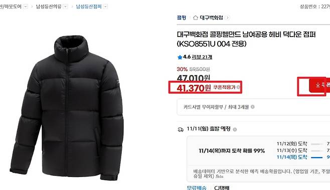 코오롱 다운 패딩 보면 알파인용 히어로와 원정대용 안타라인이 있습니다.