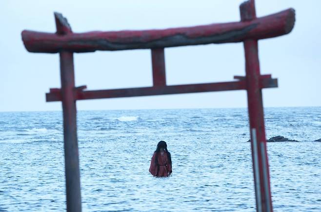 무당은 이 빨간 옷을 입은 여성이 마을에 내려오는 괴담 속 존재인 이마조라는 걸 알려준다. 과거 아름다운 여인이었던 이마조는 섬의 지주한테 강간을 당하고 첩이 된다. 이에 분노한 지주의 아내는 이마조를 끔찍하게 고문하고 사슬에 묶어 수장을 시킨다. 이후 마을에서는 이유를 알 수 없는 연쇄 죽음이 벌어지게 되었다.