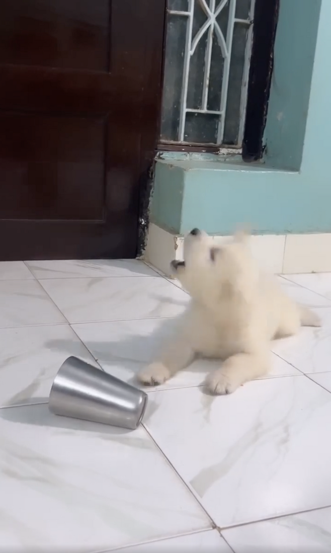 상황이 재밌어지는 것은 컵이 움직이자 강아지가 짖으며 자신의 의사를 표현할 때입니다. 컵의 미세한 움직임에도 큰 반응을 보이는 이 귀여운 모습은 사람들에게 큰 웃음을 주었습니다.