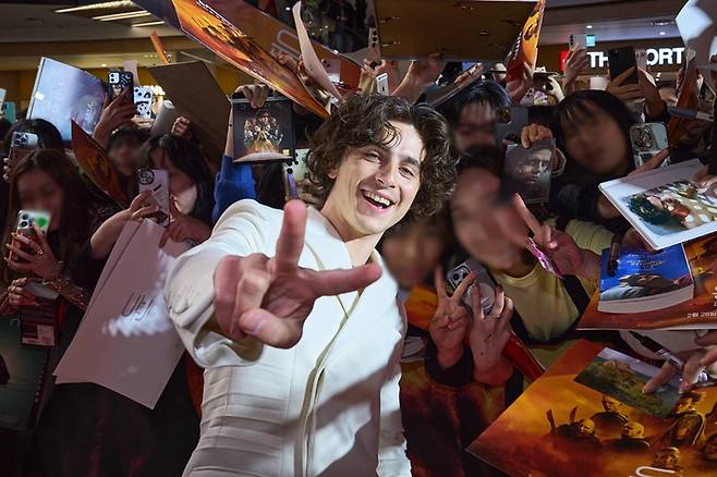 티모시 샬라메가 이번 내한 기간 가장 많이 꺼낸 말은 "한국 팬에게 감사하다" "관객에 감사하다"는 인사였다.