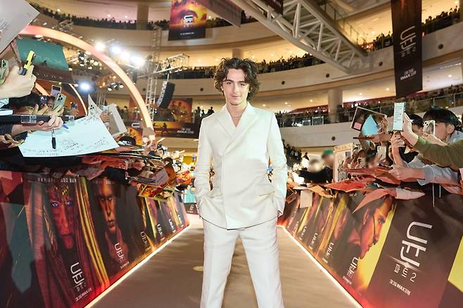 티모시 샬라메는 내한하는 할리우드 스타들의 '필수 코스'인 레드카펫도 차원이 다른 분위기로 이끌었다.