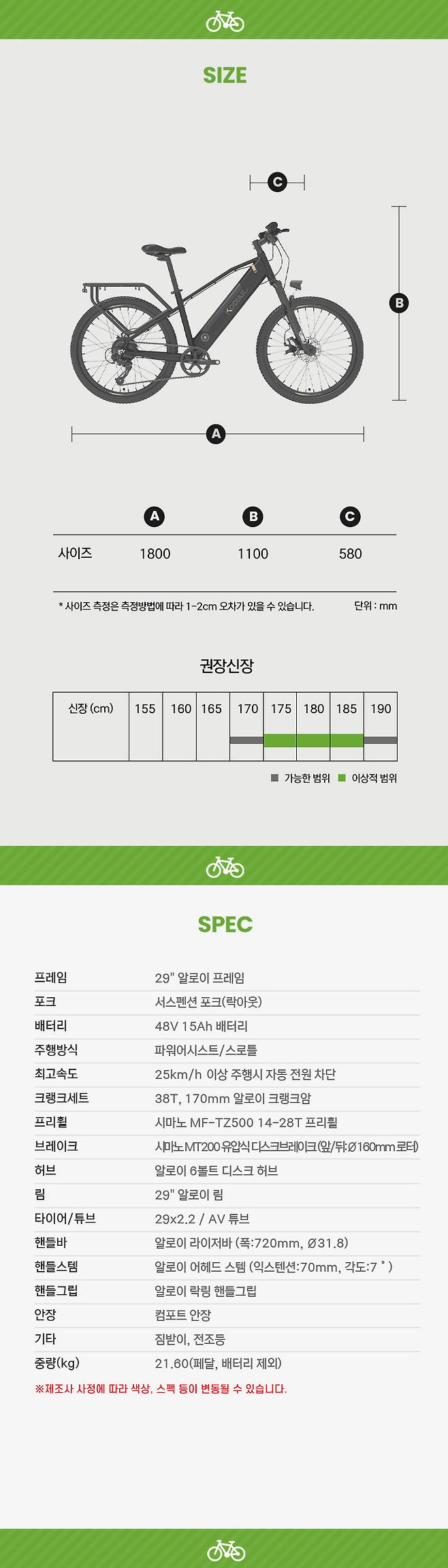 [최저가]알톤 코디악 29 시마노 7단 500W 48V 15Ah 전기자전거