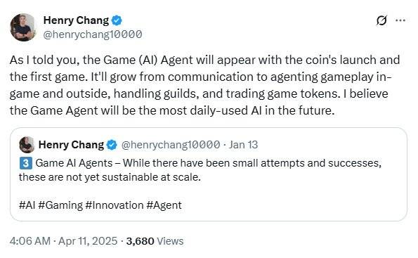 장 대표는 11일 X(구 트위터)를 통해 “게임 AI 에이전트는 코인과 첫 게임의 출시와 함께 크로쓰 생태계에 등장할 것”이라며, “커뮤니케이션부터 길드 운영, 토큰 거래까지 역할이 확장될 것”이라고 밝혔다. 이어 “게임 에이전트가 앞으로 가장 일상적으로 사용되는 AI가 될 것”이라고 강조했다.