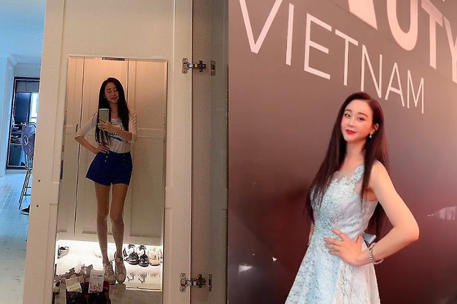 함소원은 베이지 톤의 슬림한 반팔 티셔츠에 밝은 중청 스키니 진을 매치해 전체적인 톤을 자연스럽게 이어갔다.