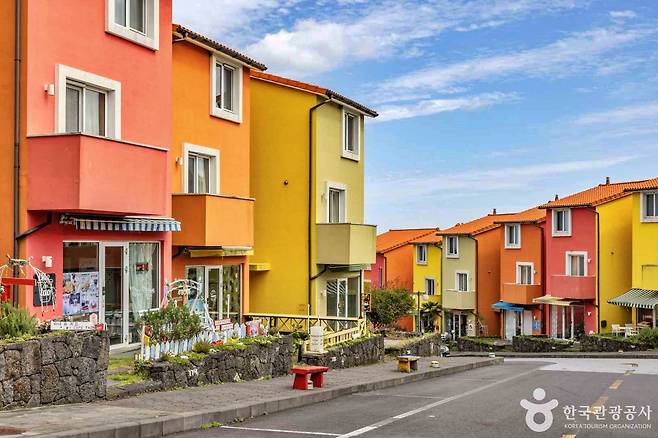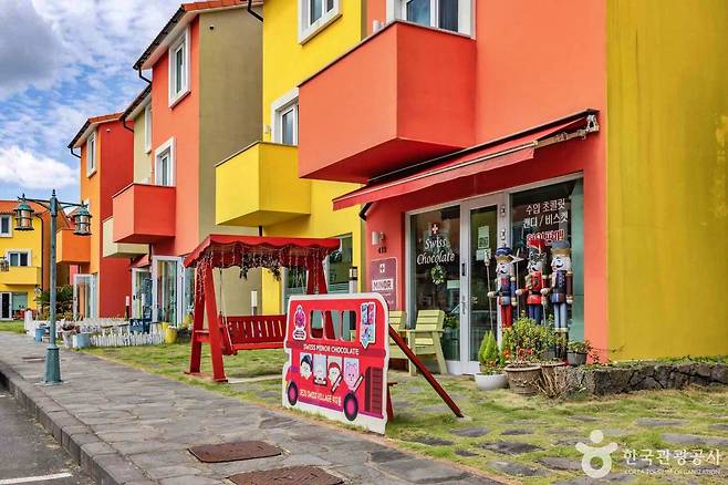 제주시 조천읍 함와로 언덕 위에 자리한 스위스마을은 제주에서 색다른 감성을 만날 수 있는 특별한 공간이다. 형형색색의 건물들이 줄지어 들어서 있어 마을에 들어서는 순간 마치 동화 속 마을에 온 듯한 기분이 든다.