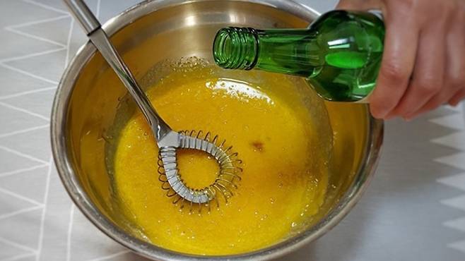 그리고 비린내 제거를 위한 소주를 조금 넣고 계속해서 저어 주세요.