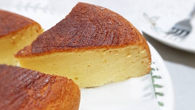 이제 접시를 대고 거꾸로 빼주세요. 카스테라가 완성된 후엔 바로 드시는 것이 아닌 식힌 후 드셔야 더욱 맛있어요. 이때 접시에 두면 물기가 생기기 때문에 구멍이 숭숭 뚫린 채를 이용해 식히는 것이 좋답니다.