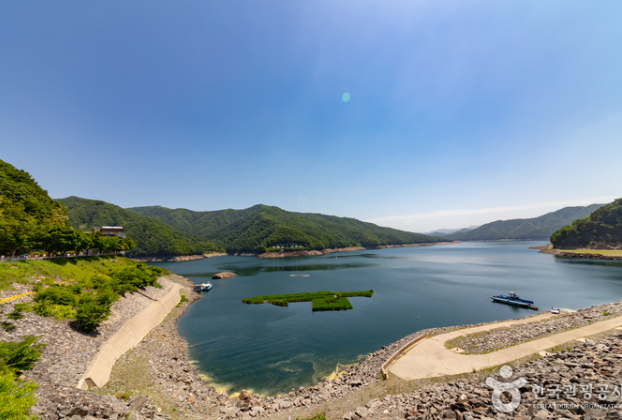 ์์ํธ๋ ํ์ฌ ๋ํ๋ฏผ๊ตญ์์ ๊ฐ์ฅ ํฐ ์ธ๊ณตํธ์์ด๋ฉฐ, ๊ทธ ๊น์ด์ ๋ด์๋์ ์ก์ง์ ๋ฐ๋ค๋ผ ๋ถ๋ฆด ๋งํฉ๋๋ค. ํธ์ ์ฃผ๋ณ์ ๋๋ฌ์ผ ์ค์ ์ฐ, ์ค๋์ฐ ๋ฑ ์ ์ฅํ ์ฐ๋งฅ๋ค์ด ํธ์๋ฉด๊น์ง ๊ฐํ๋ฅด๊ฒ ์ด์ด์ง๋ ์งํ์ ํน์ฑ ๋๋ฌธ์, ์์ํธ๋ ๋ง์น ๋นํ๊ฐ ๊น์ ๋ง๋ ๋ฏํ ํผ์ค๋ฅด๋ ํํ์ ๊ฒฝ๊ด์ ์ฐ์ถํฉ๋๋ค. ํนํ ์๊ฐ๋ ์ดํด๊ฐ ์ง๊ฒ ๋ผ๋ ๋ ์ด๋ฉด, ๋ฌผ์๊ฐ ์์์ ๋ด์ฐ๋ฆฌ๋ค์ด ์ฌ์ฒ๋ผ ๋ ์ค๋ฅด๋ ๋ชจ์ต์ด ๋ถ์ ๋ฝ์ ์ ๋น๋ก์ด ๋นํ ํธ์์ ํก์ฌํ์ฌ ๋ฐฉ๋ฌธ๊ฐ๋ค์๊ฒ ๊น์ ๊ฐ๋์ ์ ์ฌํฉ๋๋ค.