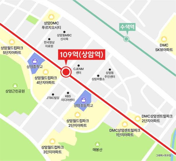 상암동 일대도 대장홍대선 개통의 직접적인 수혜지로 꼽힌다. 당초 상암역과 DMC역이 후보에 올랐지만, 불과 1㎞ 거리 차이로 상암역 신설만 최종 확정됐다.