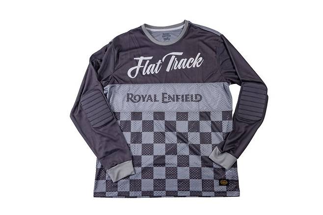 흙이 뿌려진 타원형 트랙에서 펼쳐지는 경기인 플랫 트랙 레이스에서 영감을 받아 만든 로얄엔필드의 모토크로스 저지. 레이스를 상징하는 체커 그래픽과 로얄엔필드 로고에 회색으로 디자인해 무던하면서도 깔끔한 스타일이다.