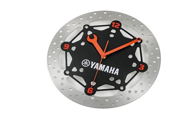 실제 R1에 들어가는 브레이크 디스크를 기반으로 제작된 벽걸이형 시계. 실제 브레이크에 기반해 무게감이 있다. 시침은 폐구 스패너, 분침은 개구 스패너 형태를 하고 있다. 디스크 표면에 거친 가공 자국과 시분침의 스패너 모양이 기계적인 감성을 물씬 풍긴다. 라이더라면 집이나 개러지에 하나쯤 걸어 놓고 싶을 만한 디자인이다.