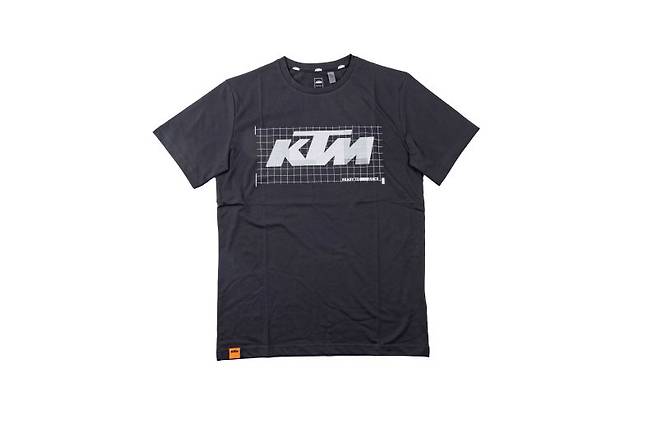 격자선 위에 KTM 로고가 올라가 깔끔한 디자인을 한 티셔츠. 후면은 검정 베이스에 아무런 그래픽이 없어 목에 있는 작은 글씨의 ‘READY TO RACE’가 더욱 눈에 띈다.