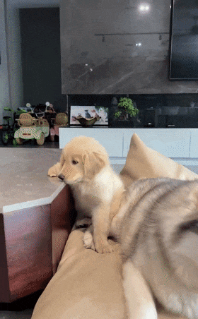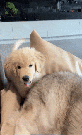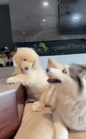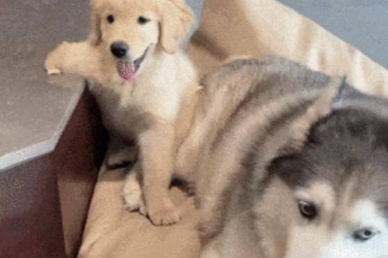 장난기 가득한 골든 리트리버 강아지가 시베리안 허스키와 함께 보내는 일상이 화제입니다.