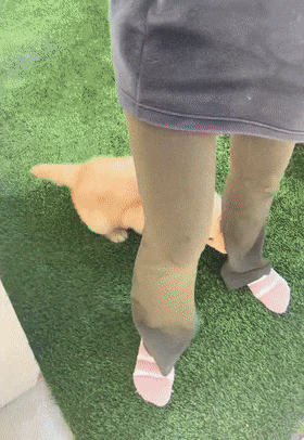 영상 속 견주는 "바짓단이 무사히 지나갈 수 없다"라며 골든 리트리버의 장난에 힘겨워하는 모습을 보여줍니다.