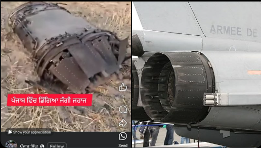 소셜미디어에는 격추된 라팔의 엔진이라고 주장하는 영상이 퍼졌습니다.