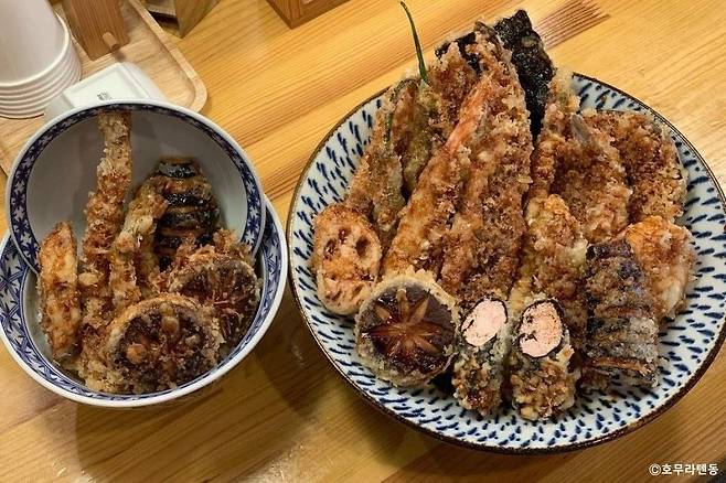 동탄 센트럴파크 근처에 위치한 호무라텐동은 재료 선택이 가능한 텐동 전문점이에요. 4가지 재료를 골라 주문하면, 바삭한 튀김이 한가득 담겨 나오는데 현지인도 반한 동탄 맛집이라고 합니다.