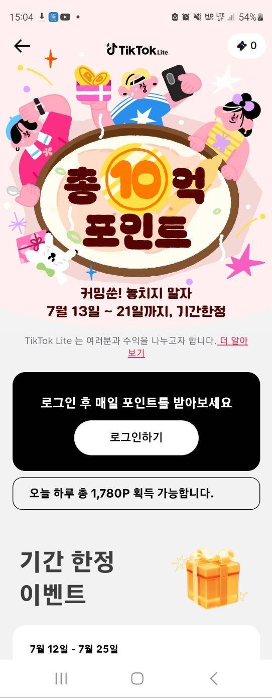 틱톡 라이트는 만 14세부터 가입이 가능하고 보상 포인트는 만 19세부터 받을 수 있다.