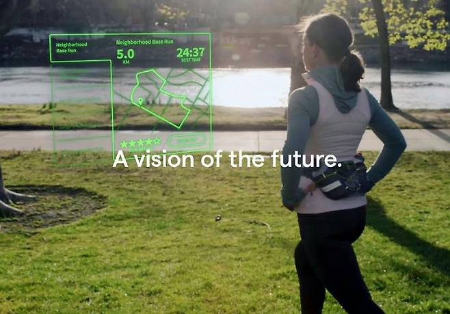 ‘모조 렌즈’는 다양한 기능을 갖고 있다. 앞서 달리는 차량의 속도를 디스플레이에 실시간 표시할 수 있고, 운동하는 사람의 심박수 변화를 실시간으로 알 수 있다. 내비게이션 기능은 기본이며 미션을 설정하면 진행 상황을 알기 쉽게 보여준다.
