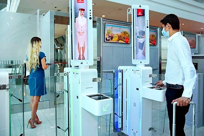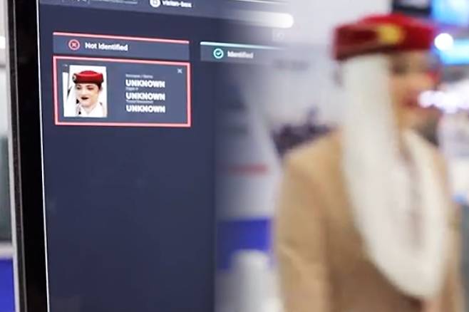 에미레이트항공의 모든 탑승객의 얼굴 및 홍채 인식으로 생체인식시스템에 등록되는데요.